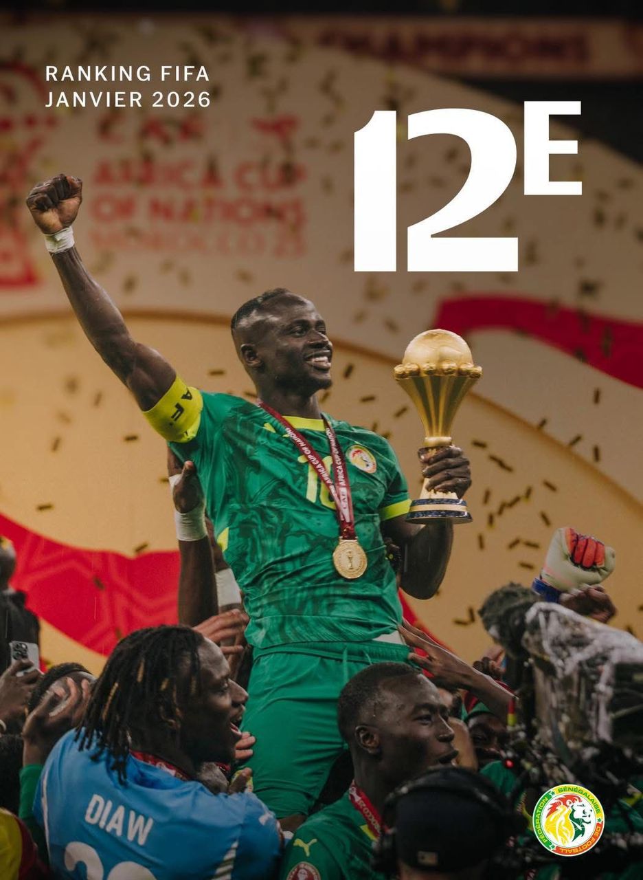 La FIFA a publié, ce lundi 19 janvier 2026, son nouveau classement mondial des sélections nationales. Fraichement auréolé de son sacre continental, le Sénégal confirme son statut de grande nation du football africain en conservant sa deuxième place sur le continent. Les Lions progressent également sur l’échiquier mondial : 19e avant la CAN, le Sénégal se hisse au 12e rang mondial.