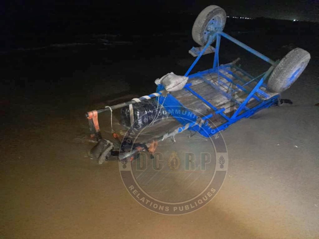Aux environs de 4 h, les gendarmes ont surpris trois charretiers en train de charger de la marchandise d’une pirogue en provenance de la Casamance. À leur vue, deux d’entre eux ont réussi à s’échapper, tandis que le troisième charretier a été interpellé. Vingt colis de 30 kg pièce de chanvre indien (600 kg au total) ont été saisis, plus un cheval et deux charrettes. L’enquête se poursuit afin d’identifier et d’interpeller les autres membres du réseau impliqués dans ce trafic.