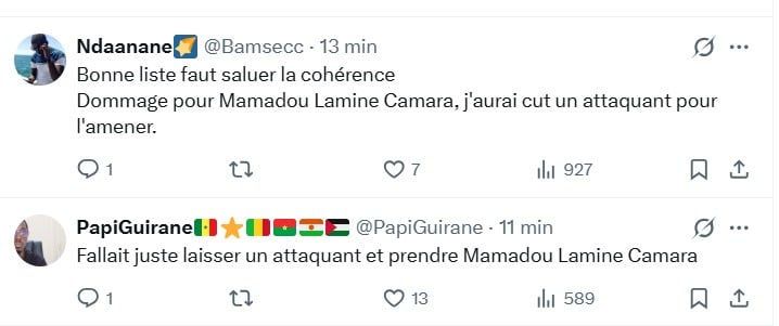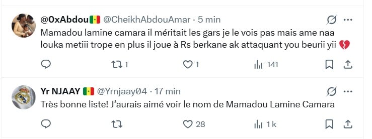 Sur les réseaux sociaux, plusieurs sénégalais ont fait part de leur surprise de voir Mamadou Lamine Camara zappé de la liste.